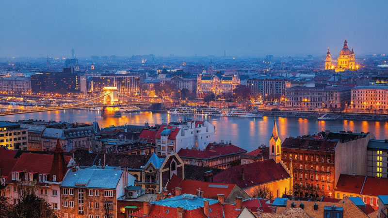 Desayuno. Visita panorámica de esta singular ciudad, fruto de la unión en 1873 de las antiguas Buda y Pest, conocida también como la Perla del Danubio, que se divide en dos zonas. Buda, donde se encuentra la colina del Castillo con el Palacio Real, la Iglesia de Matías y el Bastión de los Pescadores y Pest, zona moderna comercial en la llanura a orillas del río Danubio con el Parlamento, Basílica de San Esteban, Plaza de los Héroes. Alojamiento